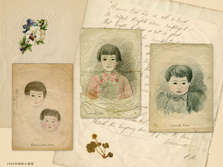 少し粗末な用紙に描かれた奥村の二人の娘の素描が残っていた。昭和20年〜(1945-1948) 頃