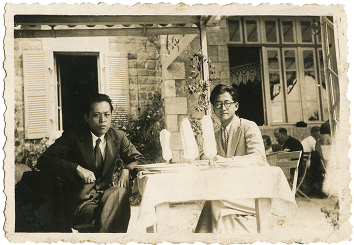 1930年代、仏留学中の故・生島遼一(後に京大教授・右側)。友人とブルターニュにて。