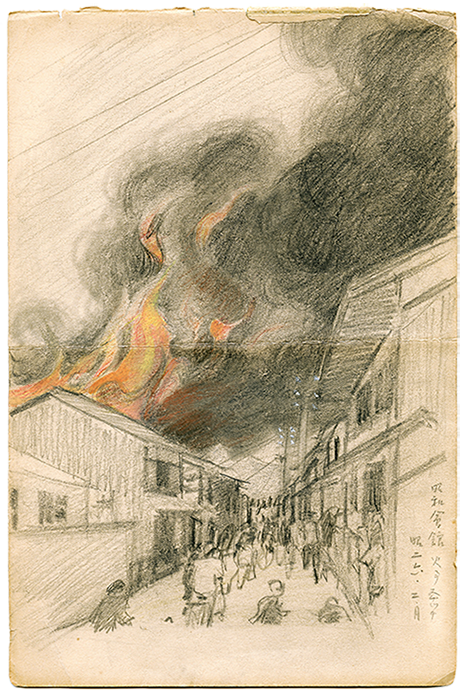 1951年(昭和26年)京都昭和会館の火災スケッチ。
