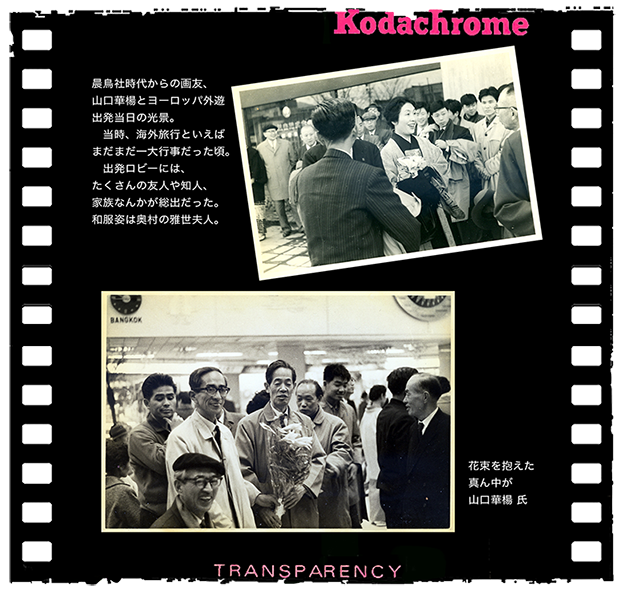 1962年(昭和37年)画友 山口華楊とヨーロッパ遊学へ。旅の出発当日のスナップ。花束までw