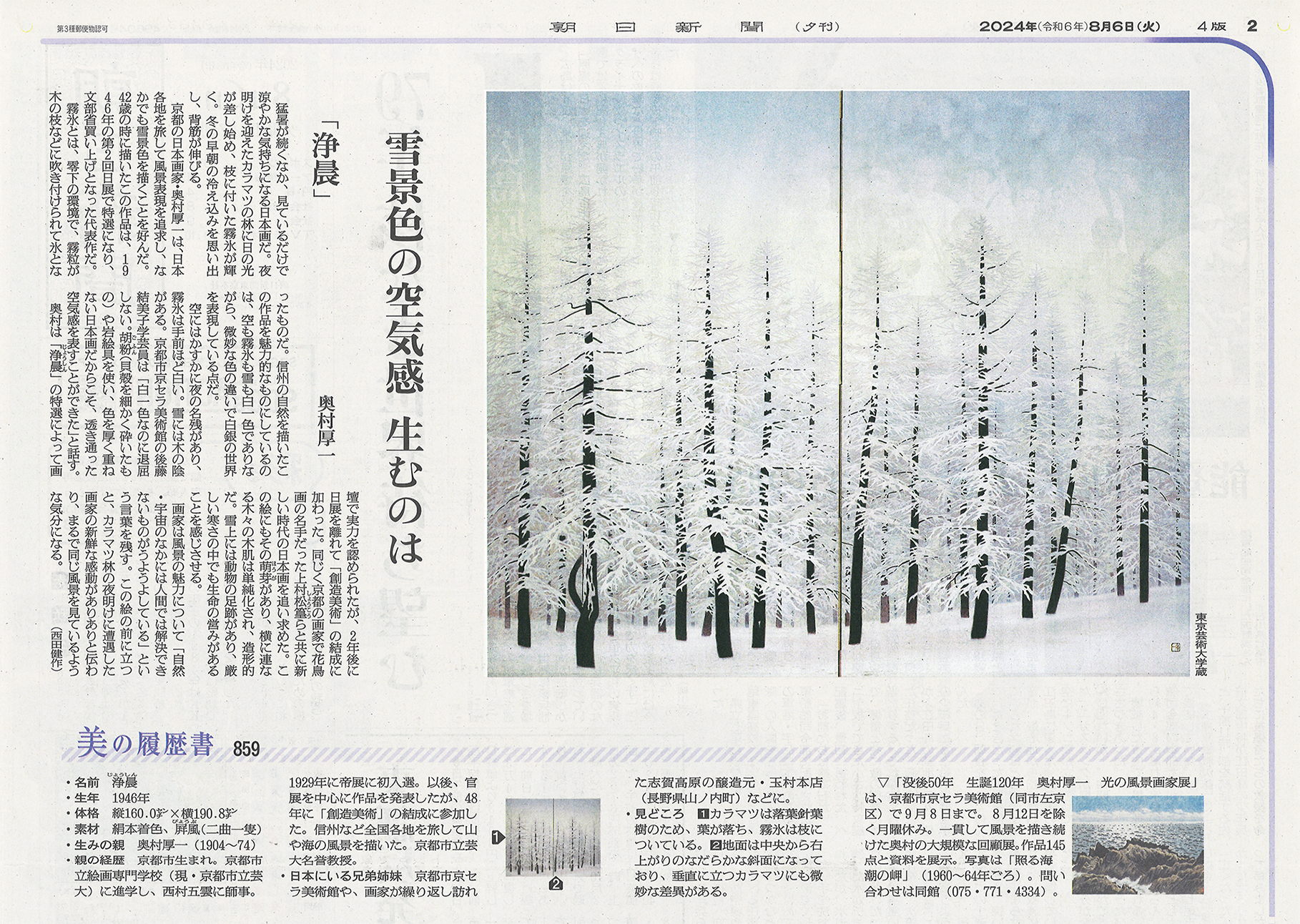 2024年8月6日の朝日新聞夕刊の記事から。8月12日の16時30分にはBSフジの特別番組のオンエア、