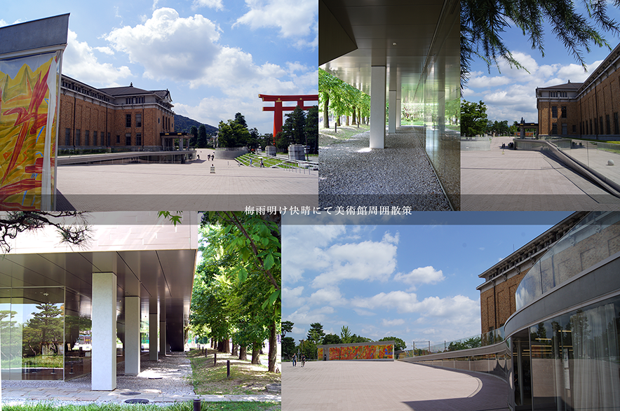 2024年7月19日「奥村厚一展」開催当日の朝、快晴。岡崎公園の美術館周囲を歩いてみた。鳥居は平安神宮。