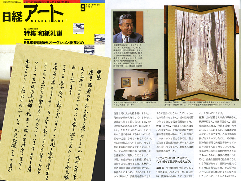 1996(平成8)奥村作品を多く所蔵している志賀高原・玉村本店の当主、佐藤喜惣治さんの対談記事が日経アートに掲載。
