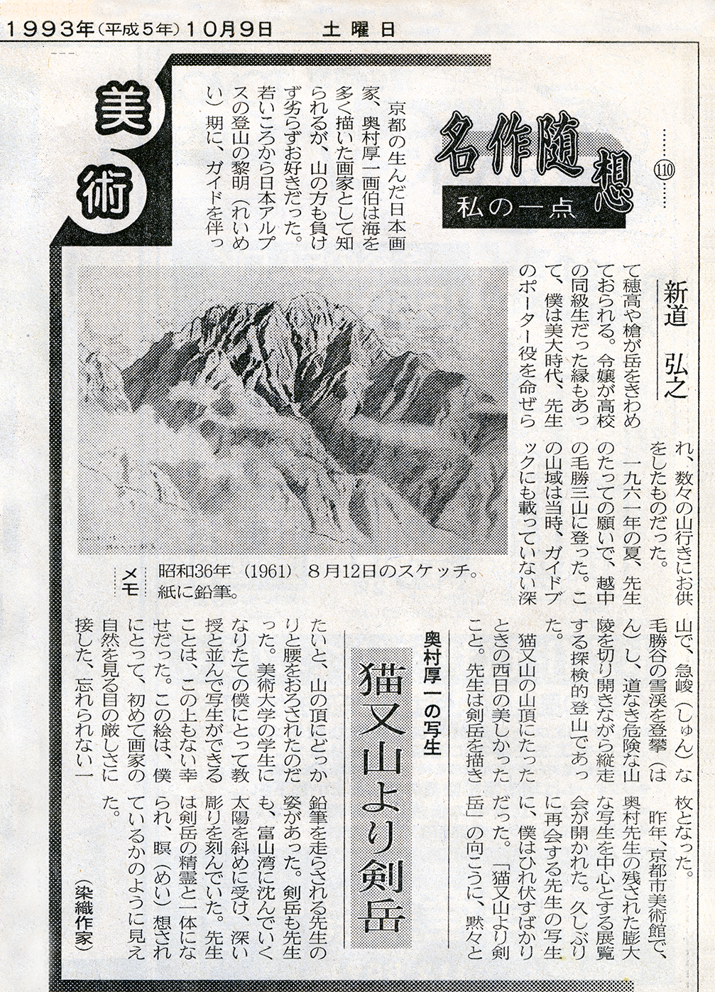 1993年(平成5年)藍染作家 新道弘之氏の新聞記事