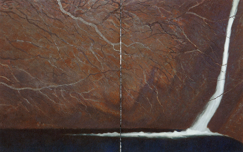 「瀧」紙本膠彩 二曲一双屏風