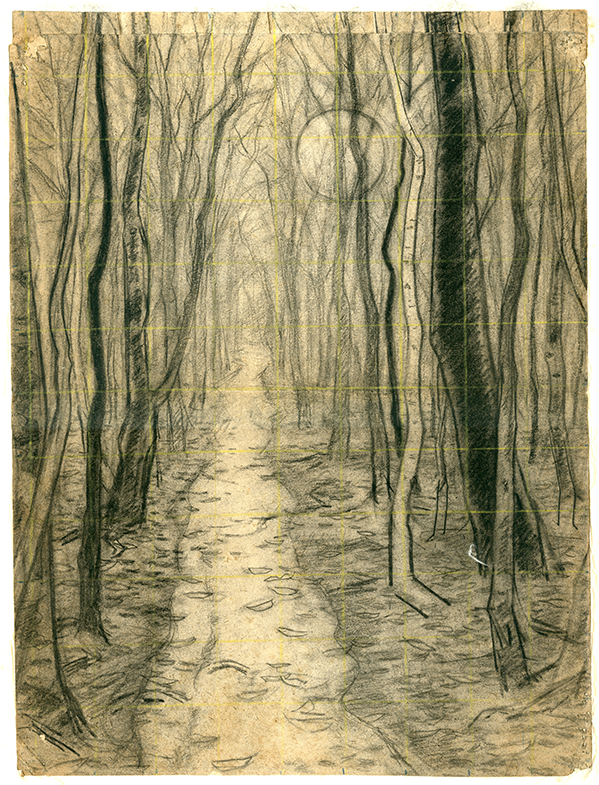 「林道」絹本膠 二曲一双屏風226×172cm 1942(昭和17年)